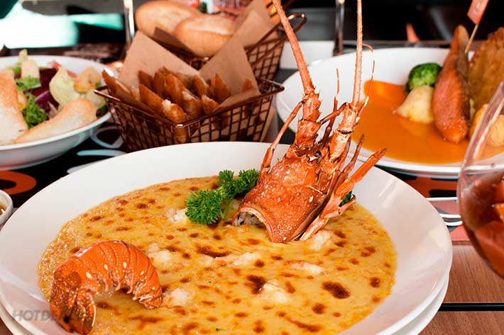 Menu của nhà hàng vô cùng đa dạng, mang đến những sự lựa chọn phong phú, phù hợp với mọi đối tượng khách hàng. Nhà hàng phục vụ từ các món ăn nhẹ như: các món salad, các món súp,... cho tới các món ăn chính như: cá hồi sốt chanh leo, lườn vịt hun khói, bít tết bò Úc,... và cả các món ăn kèm như mì Ý, bò hầm, tôm hùm bỏ lò sốt phomai,...