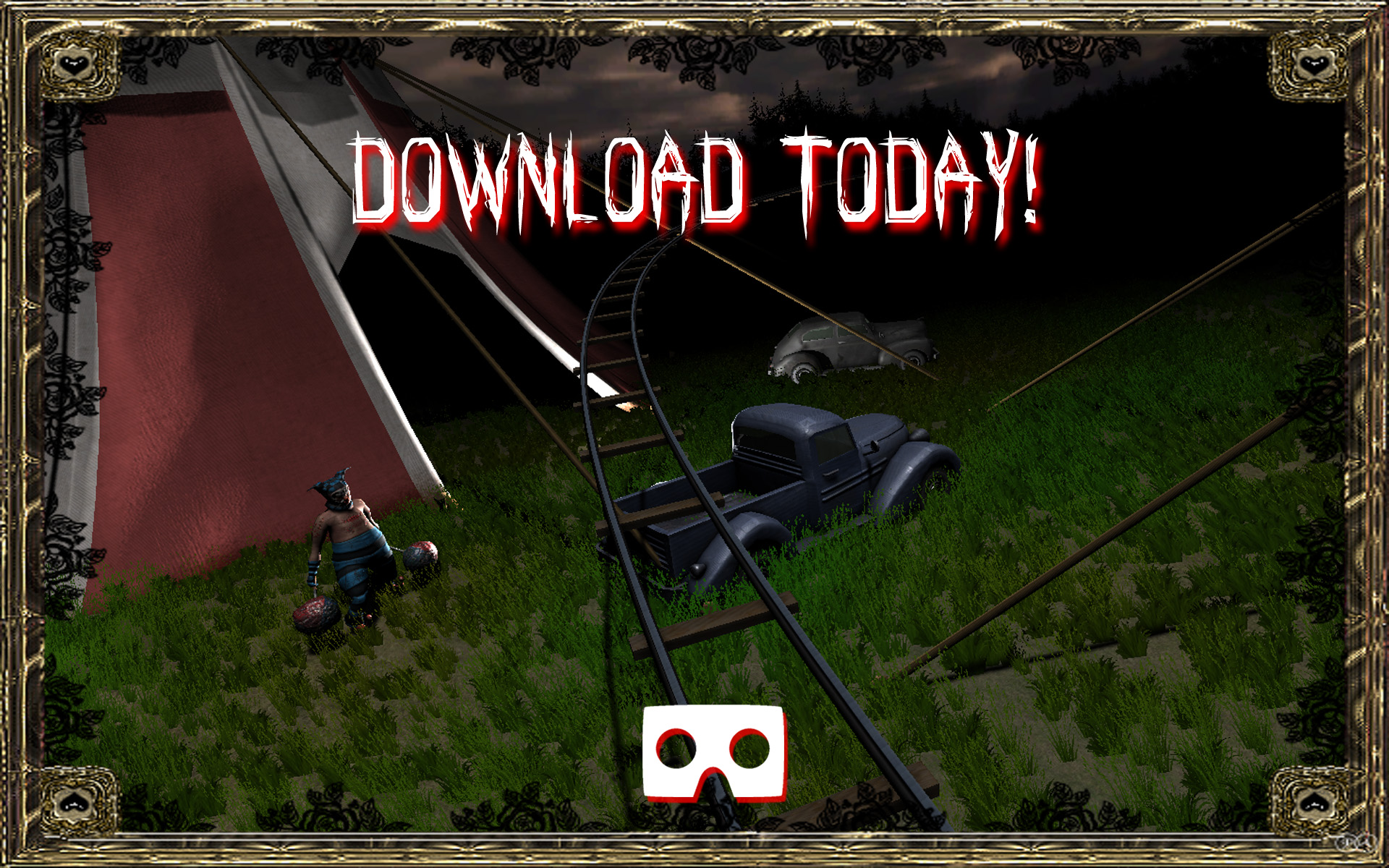 VR Killer Clown Horror Ride is a horror rollercoaster ride for your VR glasses. On our rollercoaster ride you will see dark abandoned and haunted city filled with evil killer clowns.Note: This app requires a VR headset (Google Cardboard, Google Daydream, Durovis Dive, Dodocase VR, VRelia GO, Homido, Gear VR) for best results.If you like VR Killer Clown Horror Ride, please give it a rate and a review.User Data Privacy