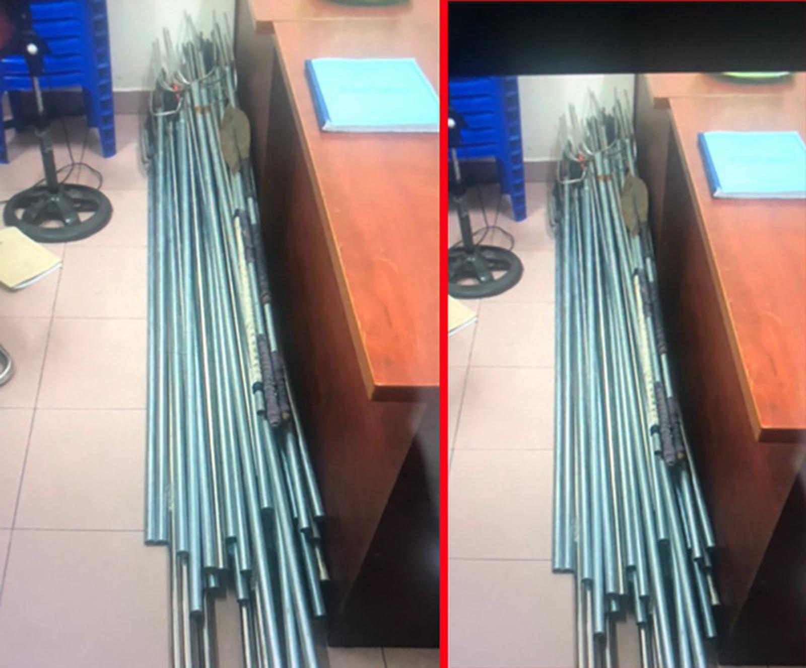 Tang vật là nhiều hung khí tự chế bị công an thu giữ. Ảnh: CA
