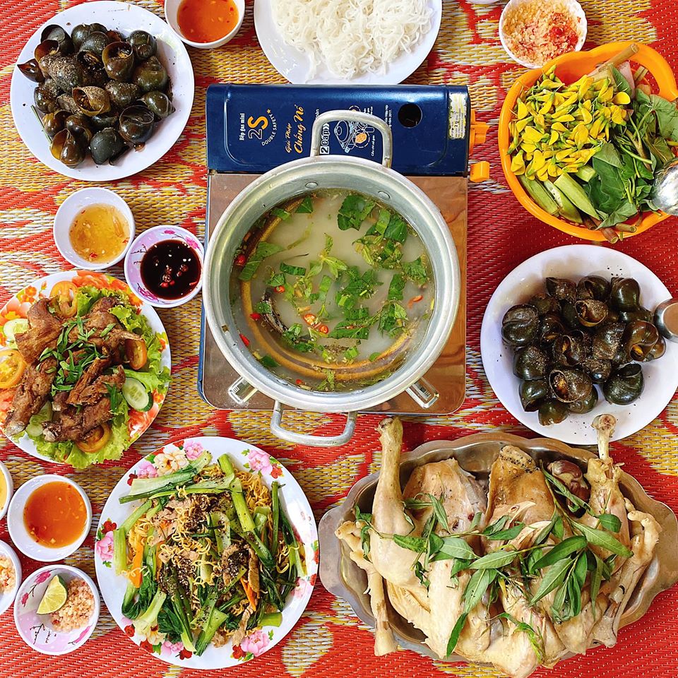 Đặc biệt là được thưởng thức nhiều món ngon đặc sản của vùng như cá lóc nướng trui, lẩu gà, lẩu lươn đồng, các món ăn từ ốc, chuột, ếch… đậm chất miệt vườn.