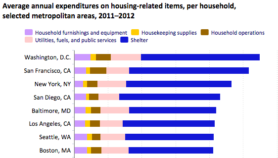 I'm putting the word "average" in massive, gargantuan scare quotes here. According to the government, the "average" D.C. resident spent $11,510 on what the BLS calls "owned dwellings" and $4,396 on what BLS calls "rented dwellings" in 2012.