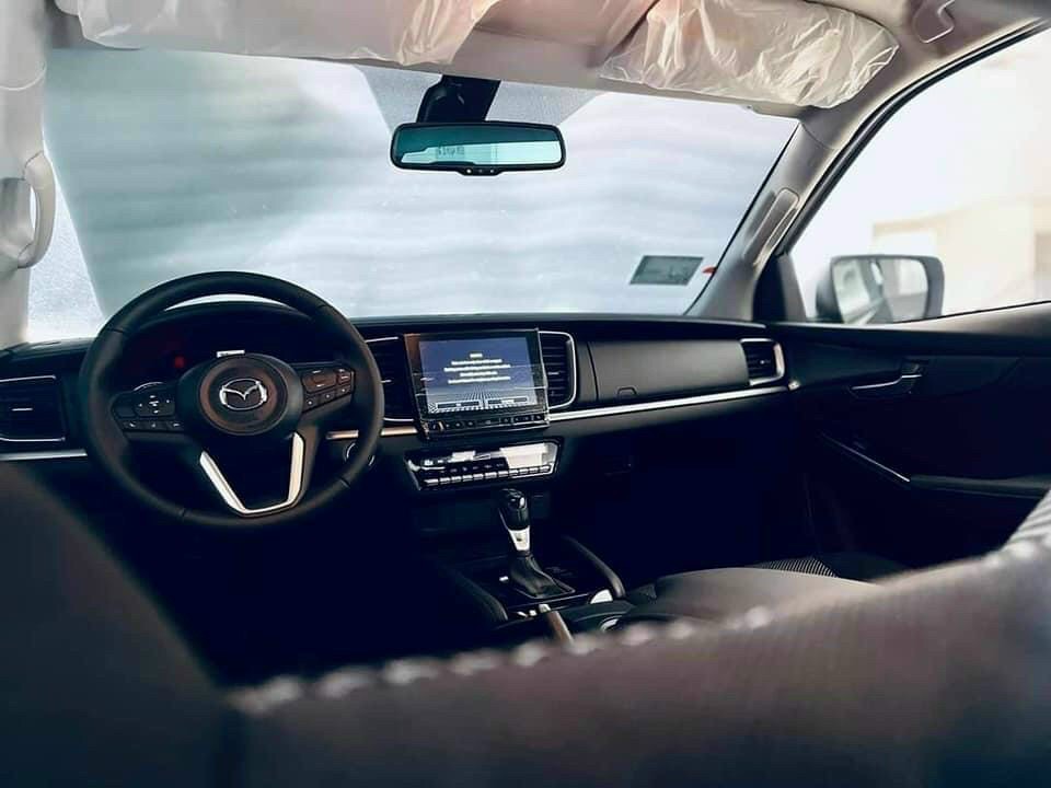 Vô lăng đa chấu với phần trung tâm dạng tròn ôm lấy logo là một trong những đặc trưng của các mẫu xe nhà Mazda. Đáng chú ý, các chi tiết trang trí kim loại trên cửa và bảng điều khiển có phong cách thiết kế tương tự như trên các mẫu SUV Mazda-CX-5 và CX-9.