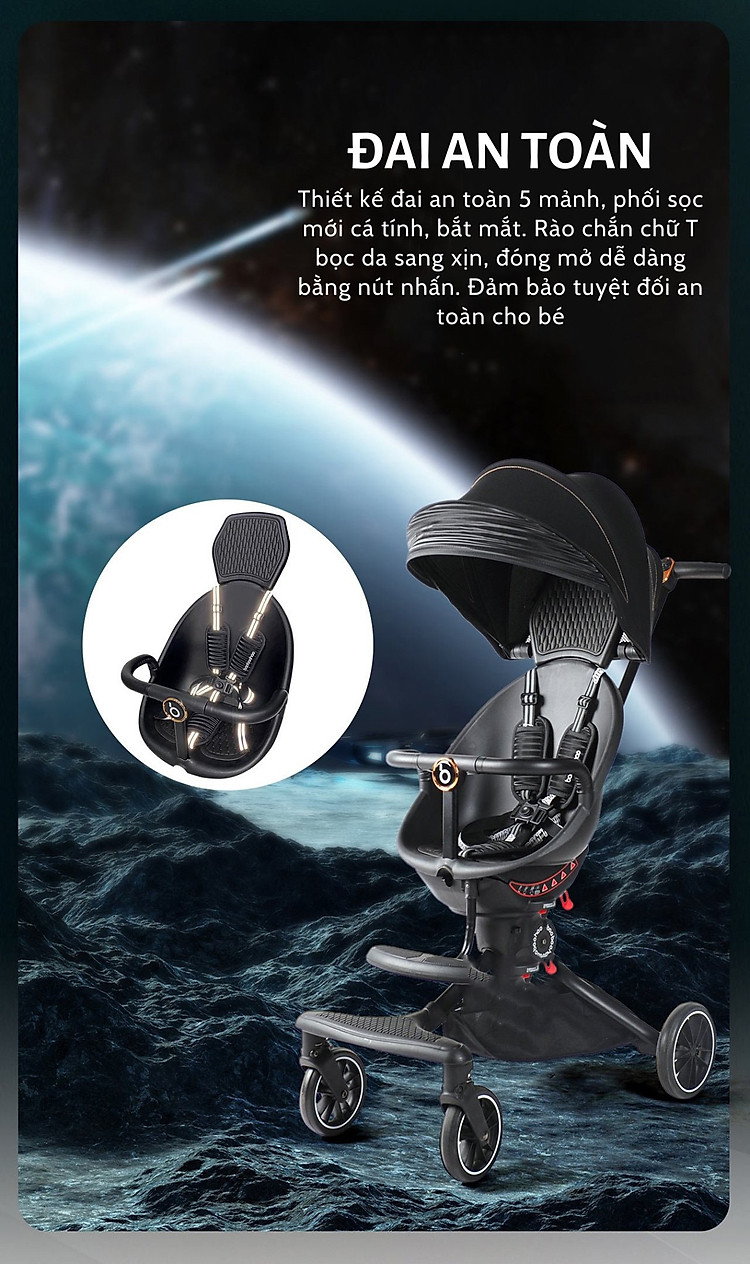 - Khung an toàn hình chữ T, bọc da sang xịn, chỉ 1 nút bấm có thể mở đôi khung bảo hiểm để những bé lớn ngồi dễ dàng hơn