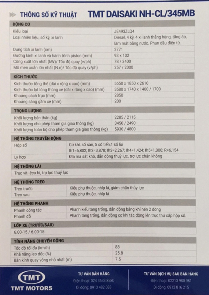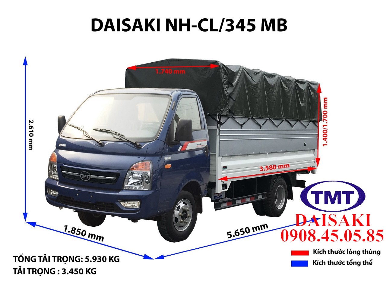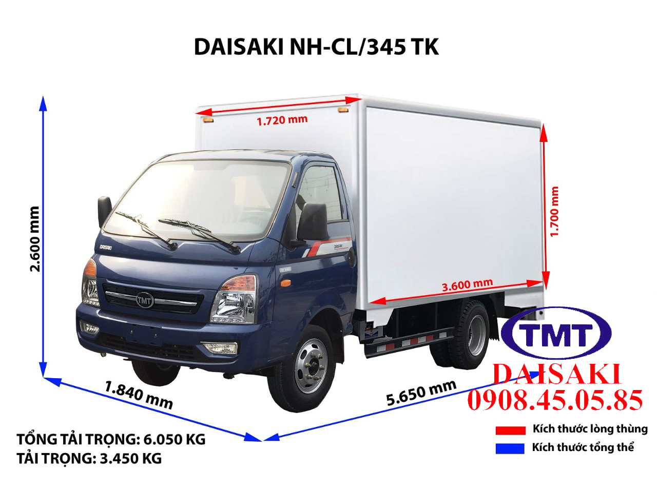 XE TẢI 3T5 DAISAKI là dòng xe tải nhẹ được thiết kế bởi các kỹ sư của Tập Đoàn Ôtô ISUZU Nhật Bản và Công Ty Cổ Phần Ô Tô TMT.