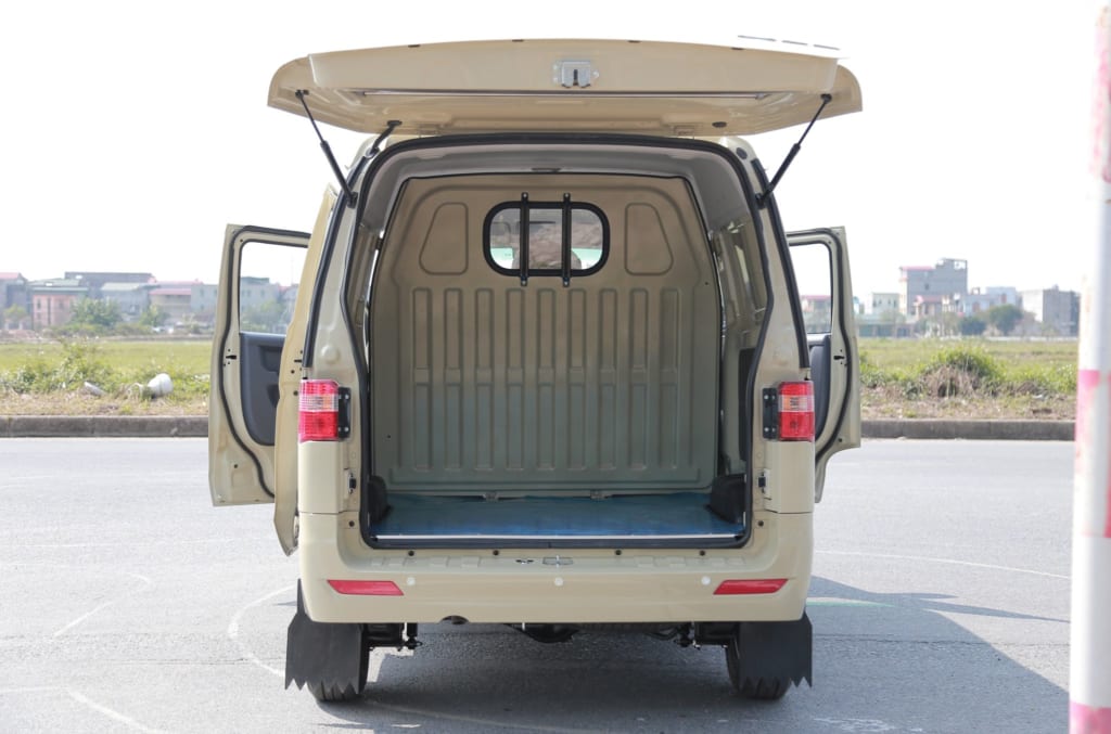 Đuôi Xe Tải Van SRM X30i V5 5 Chỗ hình vuông cứng cáp, chắc khỏe. Có cánh cửa hậu mở lên được để xếp hàng hoá dễ dàng.