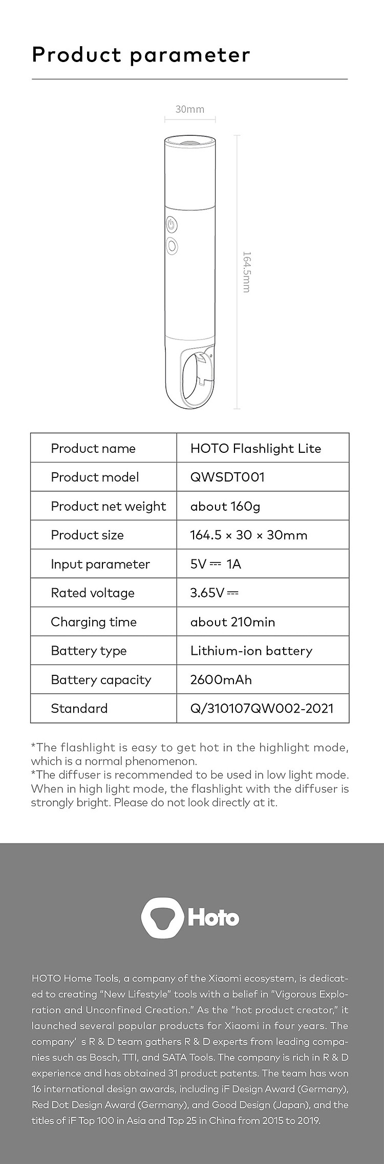 Xiaomi Youpin HOTO Đèn Pin LED Power Đèn Pin Siêu Sáng 5 Chế ...