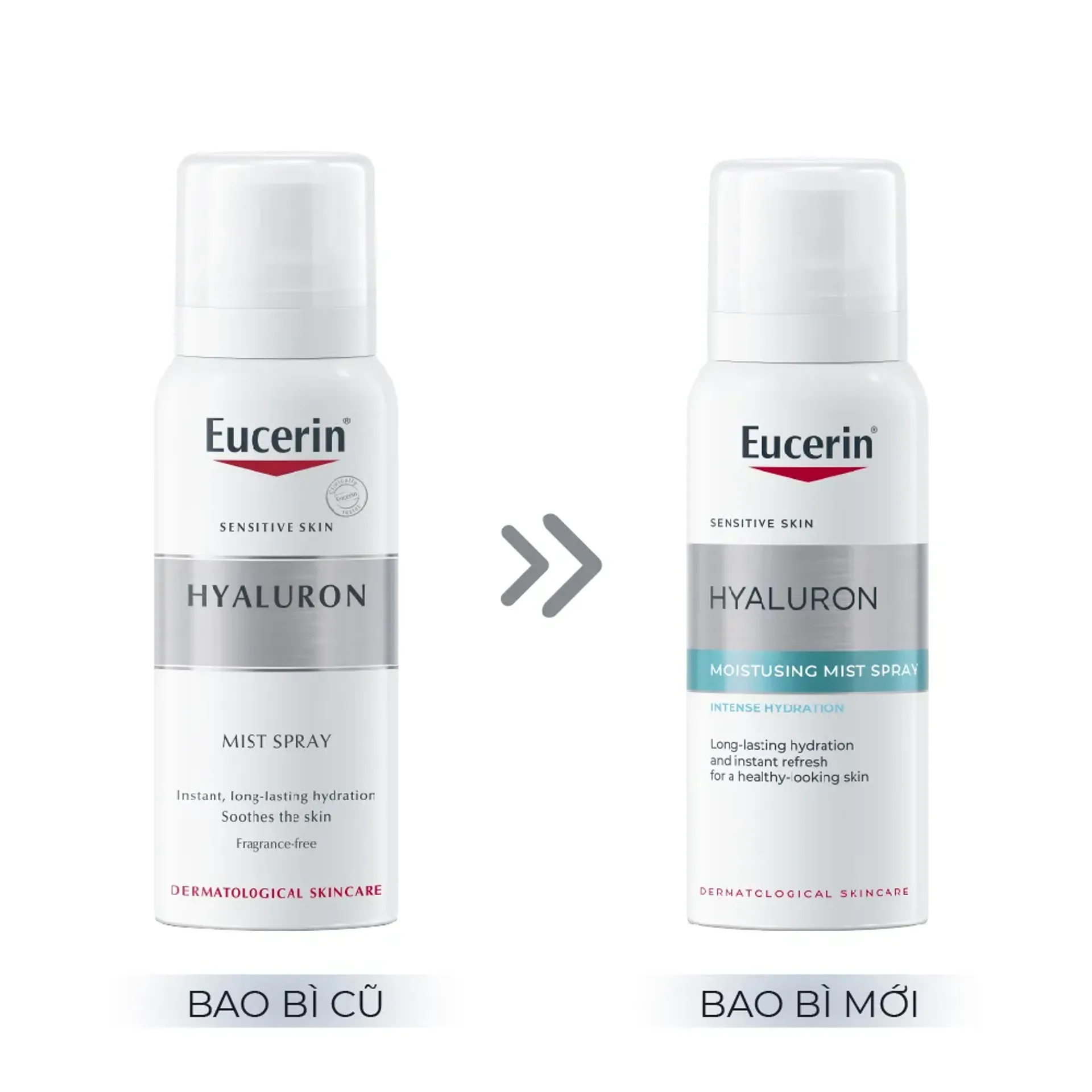 - Eucerin Hyaluron Mist Spray cấp ẩm ngay lập tức và giữ ẩm liên tục cho da suốt 24h.