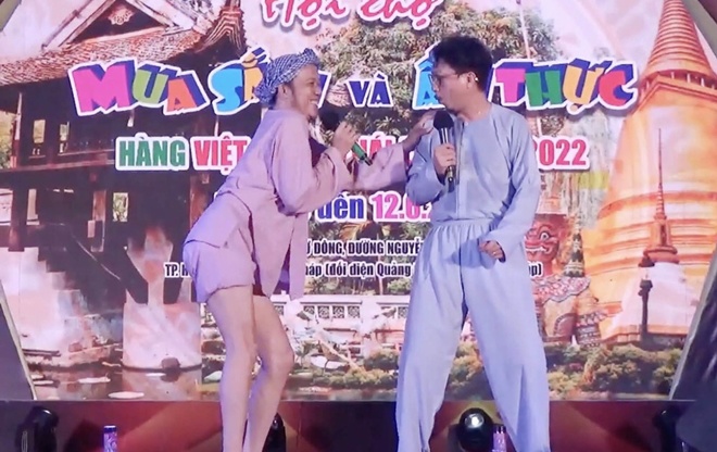 Về phần mình, danh hài Hoài Linh không ngần ngại xắn quần lên cao để lộ đôi chân thon thả, tung hứng với Hứa Minh Đạt. Tuy nhiên, màn biểu diễn của nam nghệ sĩ không mang đến nhiều tiếng cười như trước. Lúc kết thúc tiết mục, cặp đôi diễn viên nhận về tràng vỗ tay lác đác.