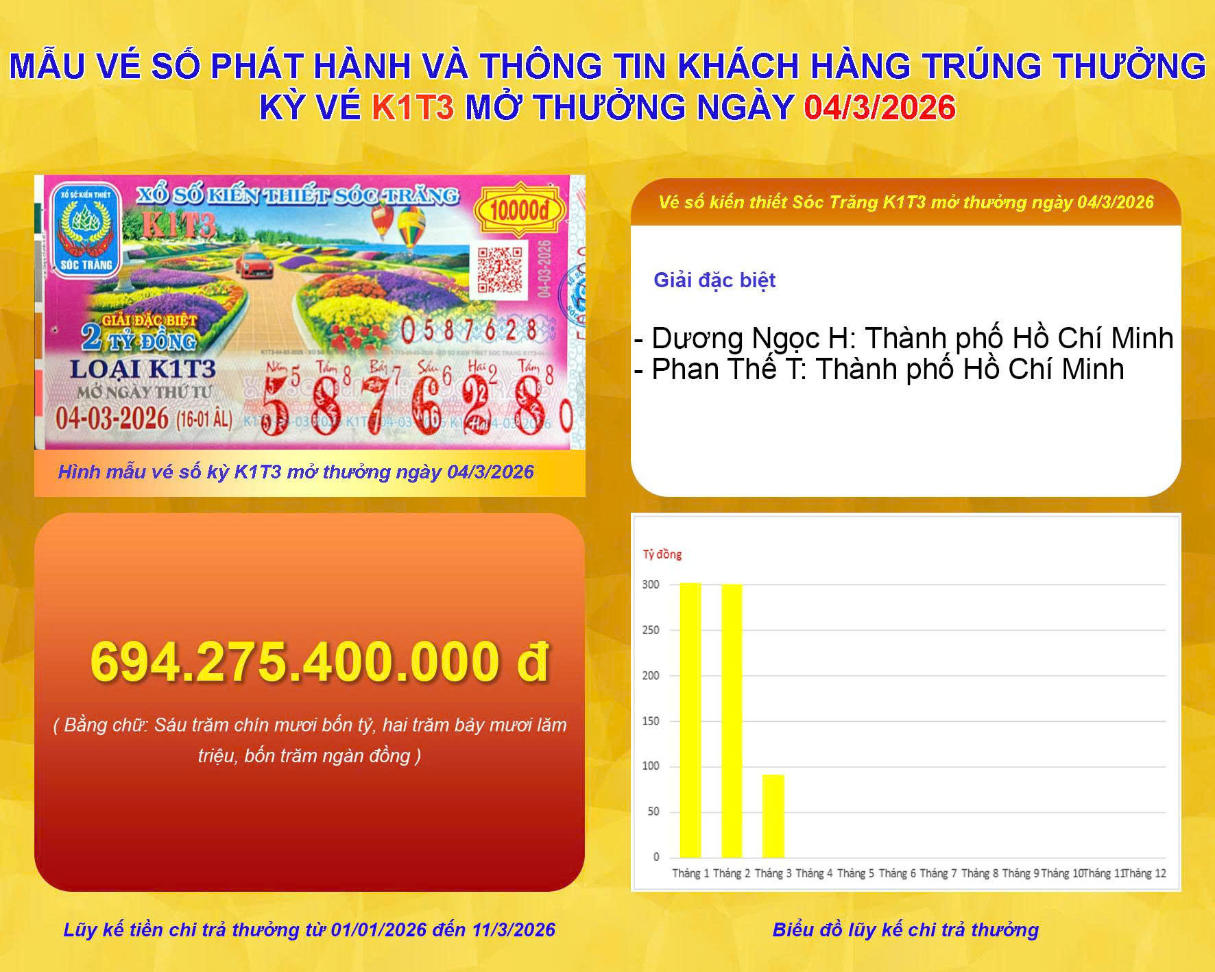 Thông tin kỳ vé K1T3 mở thưởng ngày 04/3/2026