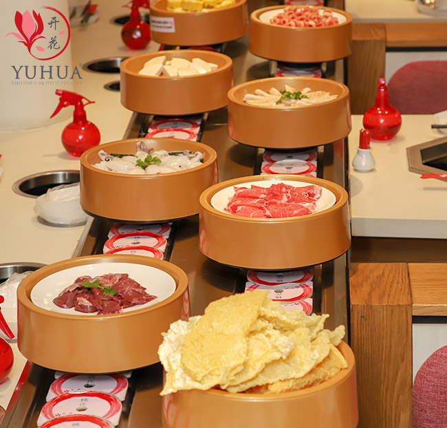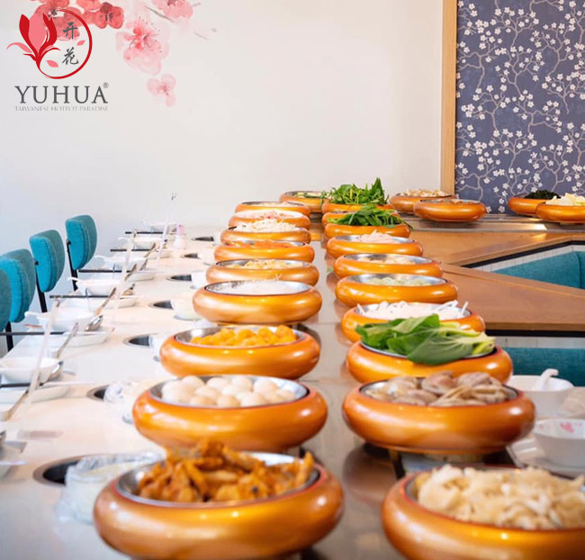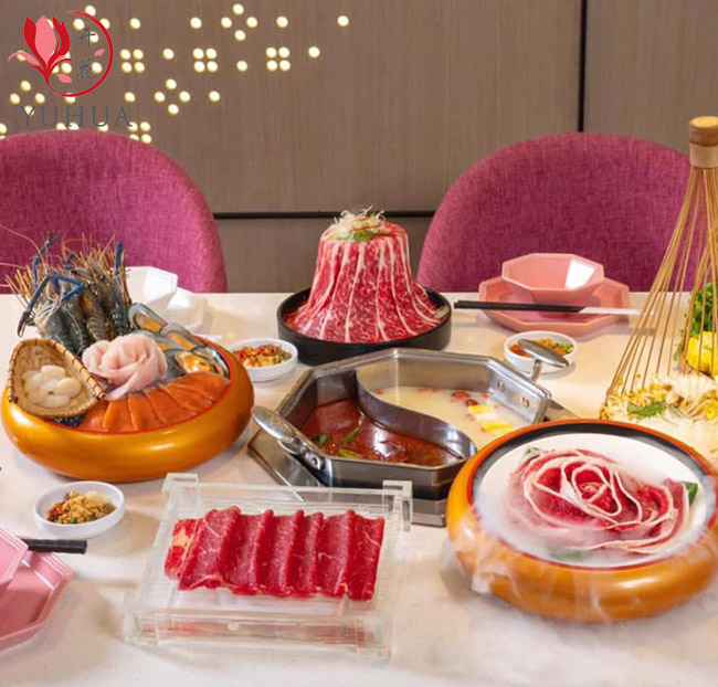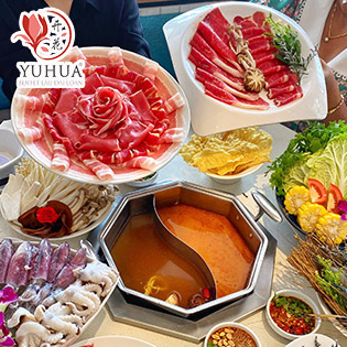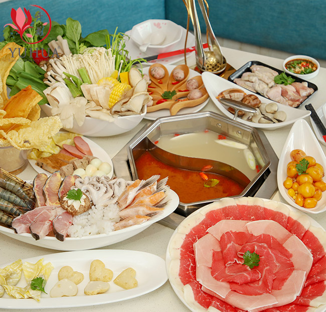 Nhà hàng Yuhua Special sở hữu menu buffet lẩu lừng danh chạy chuyền trên thố với 6 vị lẩu và hơn 80 món nhúng đa dạng từ các loại thịt thượng hạng, rau củ, thịt viên tươi ngon.