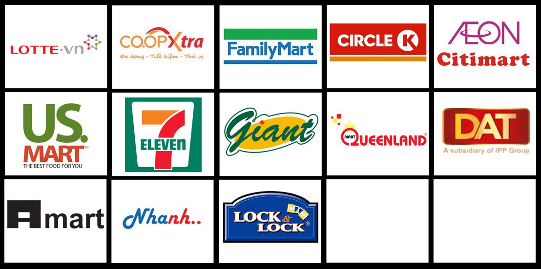 Các Siêu thị như Maximax, Coopmark, Big C, …Tp. HCM, Hà Nội, Đà Nẵng..