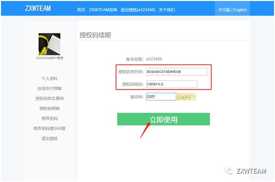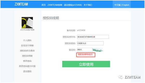 Users who havelogged in to ZXWSoft can click the Account Settings on the left menu bar toenter the personal data page for renewal of authorization code.
